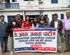 काठमाडौं / आम जनता पार्टी (आजपा)ले काठमाडौंको विभिन्न क्षेत्रमा बसोबास गर्दै आएका सुकुम्वासीहरुलाई जग्गाधनी लालपुर्जा दिन माग गर्दै भूमी समस्या समाधान आयोग ताहाचल, काठमाडौंमा आज ज्ञापनपत्र बुझाएको छ ।