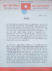 ‘निर्णय नसच्चाए युवा संघ नेपालको विधान, पद्धति र प्रक्रियाको पालना गर्दै युवा आन्दोलन लाई गलत दिशावाट जान रोक्न हाम्रो जिम्मेवारी र जवाफदेहिताको बोधगरी यो गलत आभ्यास र निर्णयका सम्बन्धमा हामि कडा कदम चल्न वाध्य हुने कुरा जानकारी गराउदछौ’ उनीहरुले जारी गरेको विज्ञप्तीमा उल्लेख गरिएको छ ।