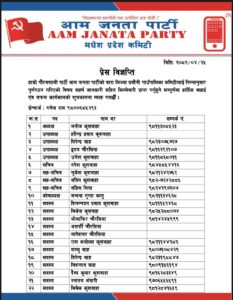 आजपा बारा जिल्ला अध्यक्ष राजकिशोर साहका अनुसार कमिटीका उपाध्यक्षमा हरिन्द्रप्रसाद कुशवाहा, दिपेन्द्र साह, हृदय चौरसिया, उमेश कुशवाहा, सचिवमा रुपेश कुशवाहा, सहसचिवमा मुकेश कुशवाहा, संदिप कुशवाहा, सहिम मियाँ र कोषाध्यक्षमा बन्दना गुप्ता कानु रहेका छन् ।