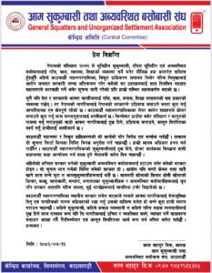 नेपालको संविधान २०७२ ले भूमिहीन सुकुम्बासी, दलित भूमिहीन एवं अव्यवस्थित बसोबासलाई गाँस, बास, स्वास्थ्य, शिक्षाको व्यवस्था गर्ने भनेर मौलिक हक अन्तर्गत दायित्व हुँदाहुँदै अहिले काठमाडौं महानगरपालिका, विद्युत प्राधिकरण लगायत मिलेर गरिब निमुखालाई आरोप लगाएर सरकारी जग्गा अतिक्रमण गरेर बसेको घर टहराहरुलाई सात दिनभित्र नहटाए महानगरले कारबाही गर्ने भनेर सूचना जारी गरेको प्रति संघको गम्भिर ध्यानाकर्षण भएको विज्ञप्तीमा उल्लेख गरिएको छ ।