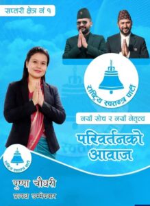 सप्तरी -१ मा ‘घण्टि’ चुनाव चिन्हसहित परिवर्तनको यात्रामा पुष्पा चौधरी