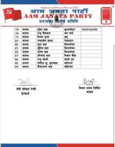 ​आजपा काठमाडौं उपत्यका कमिटीका इन्चार्ज देवी पण्डित रेग्मी र अध्यक्ष बिजय यादव ‘निर्बिज’ द्वारा जारी विज्ञप्ति अनुसार कमिटीको नेतृत्व यस प्रकार रहेको छ: