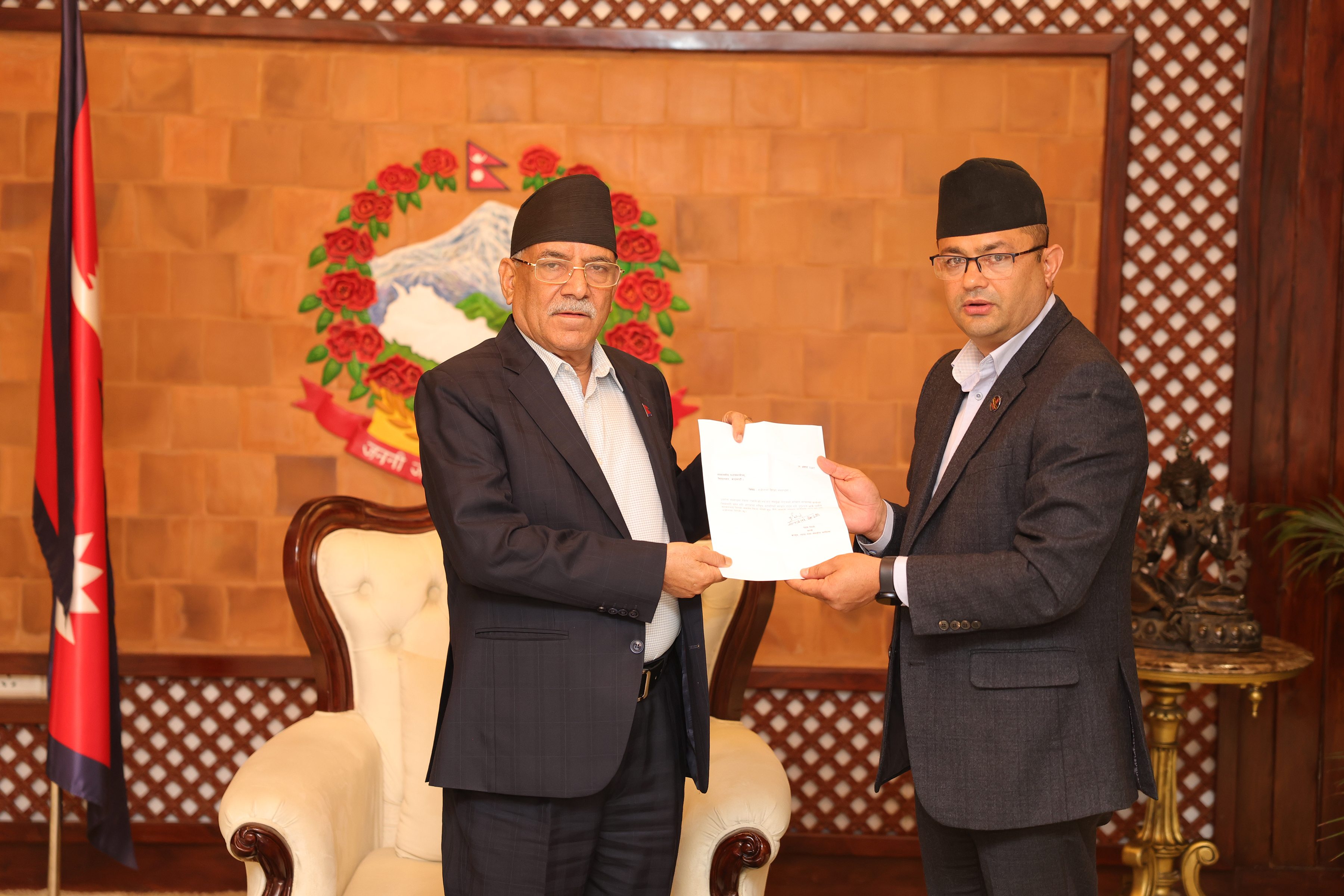 बुधबार साँझ बालुवाटार पुगेर उनीहरुले प्रधानमन्त्री पुष्पकमल दाहाल ‘प्रचण्ड’लाई राजीनामा पत्र बुझाएका हुन ।